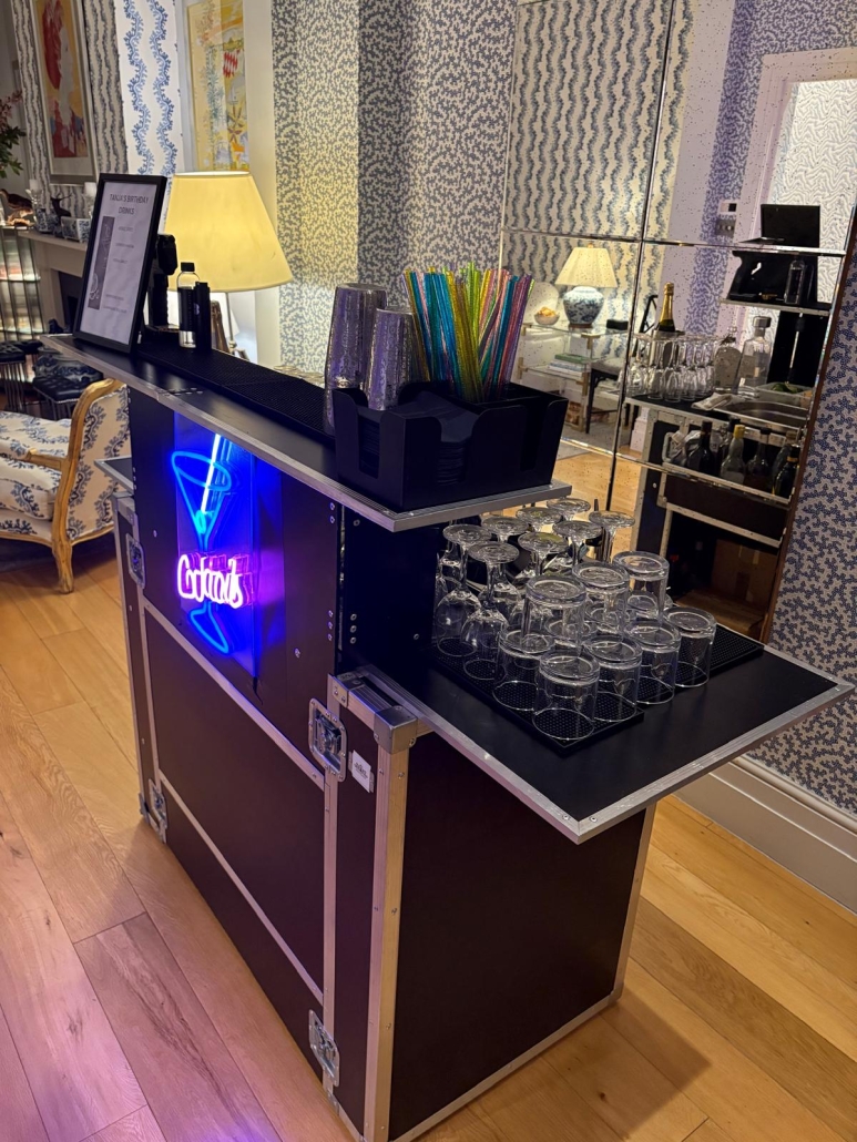 A complete bar setup with handcrafted cocktails, glassware, ice, décor and professional bartenders. Designed for intimate gatherings and smaller events where quality and atmosphere matter.